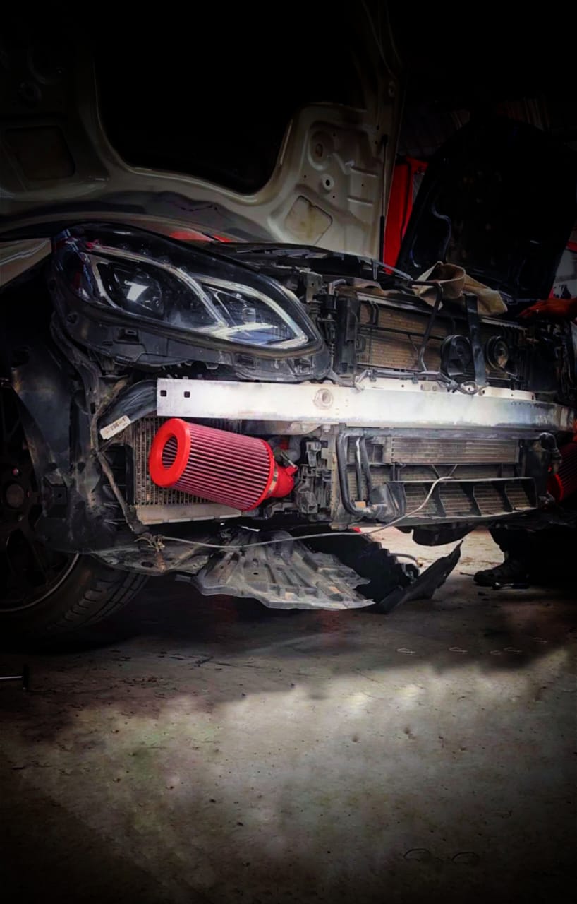 Provides best lower intake temperatures and power gains tested against different types of intakes. This solution proved to be better with the ability of the turbocharger to breath directly from the atmospheric air.